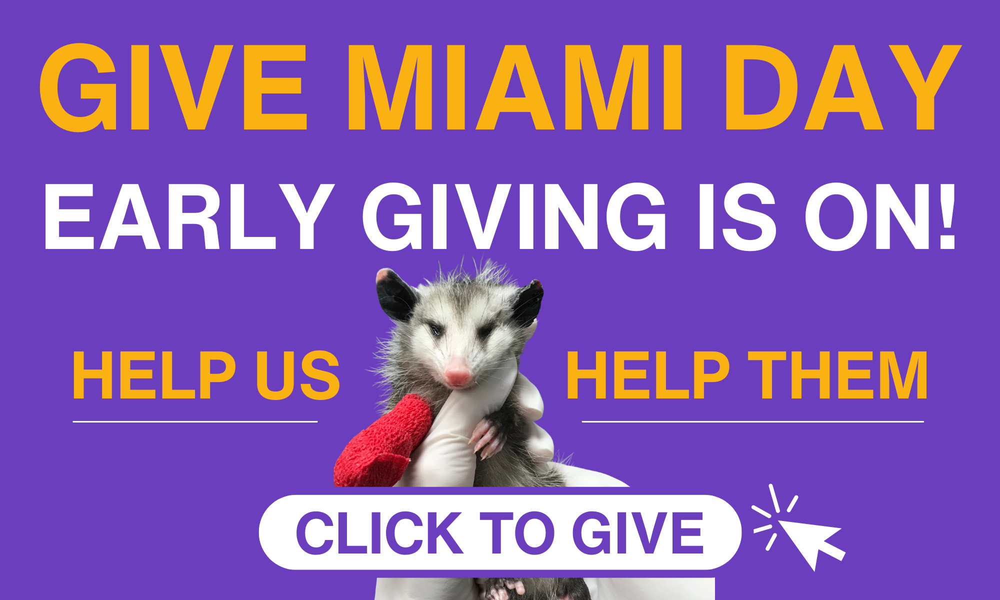 Give Miami Day early giving has begun and we’re counting on you to help us help them. Your donation provides our patients with food, warmth, and lifesaving care. Donate today to give Miami’s wildlife a second chance.